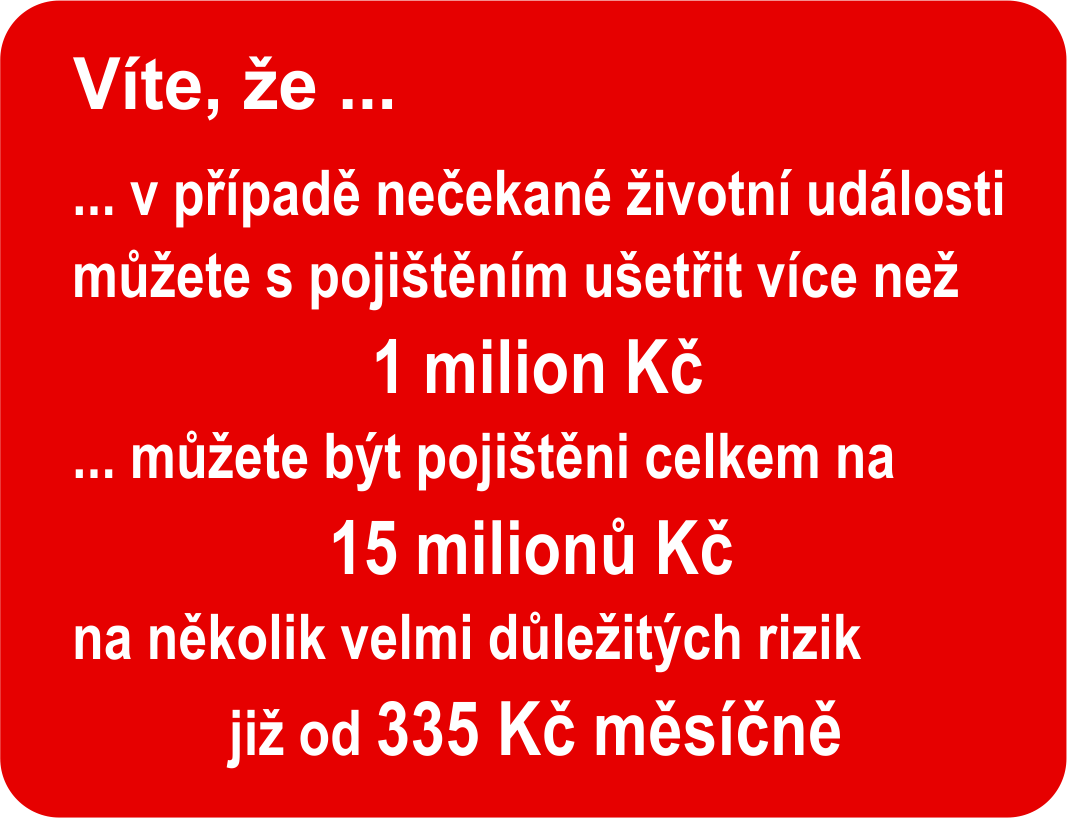 Většina lidí si myslí, že životní a úrazové pojištění na vyšší částky je hodně drahé, ale jak vidíte, vždy to tak být nemusí.