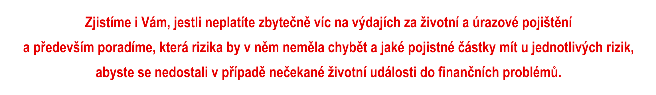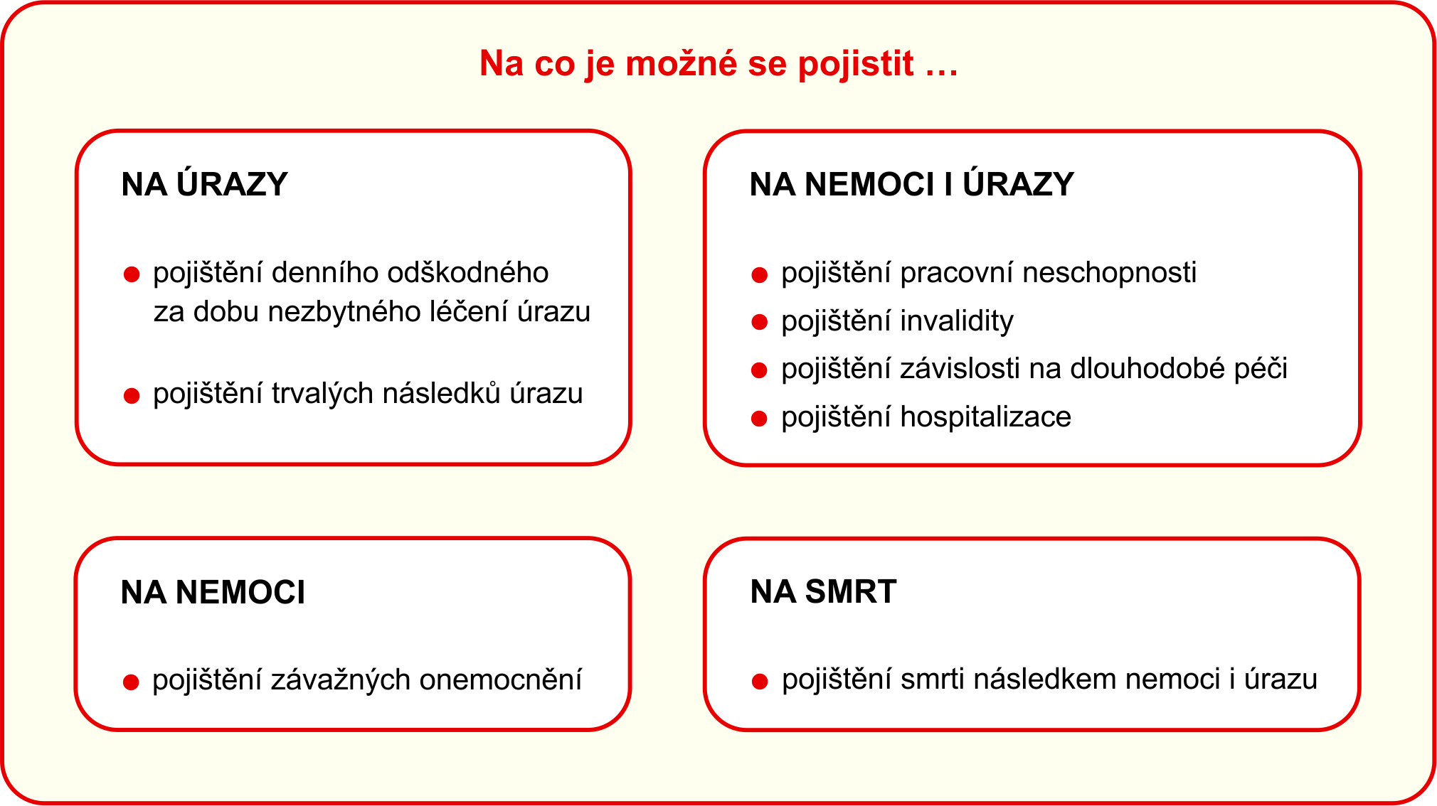 … je to životní a úrazové pojištění … a to nejen na vašich výdajích, ale především v případě nečekané životní události. Životní a úrazové pojištění je ze všech nejrozsáhlejší a podle nás také nejdůležitější, proto jsme mu věnovali nejvíce času. Je možné se pojistit na různá rizika, která mohou způsobit i dlouhodobý nebo trvalý výpadek příjmů a také je různě kombinovat.